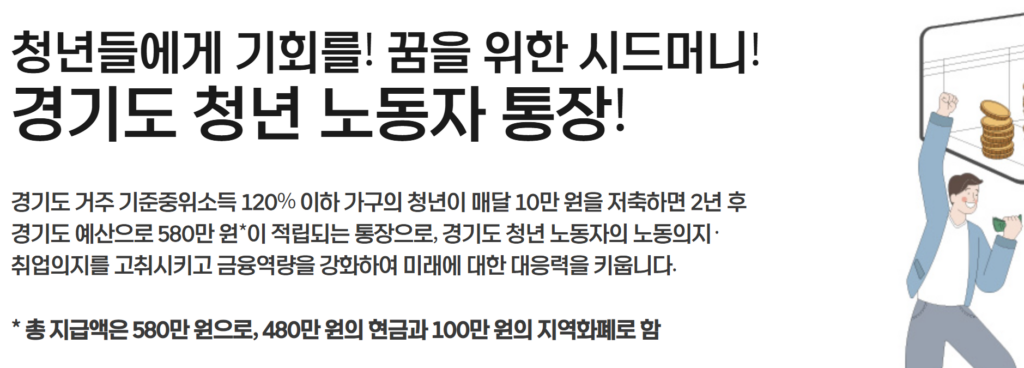 지금부터 경기도 청년 노동자 통장 신청방법, 지원금, 조건을 쉽게 알려드리겠습니다.